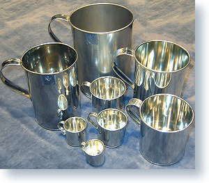 Mittoja valmistetaan 2cl:sta aina 2l:aan. ½l, 1l ja 2l kokoja saa myös ruostumattomana ja kruunattuna. Kerma- ja maitokannujen koot ovat 1dl:sta 5l:aan.